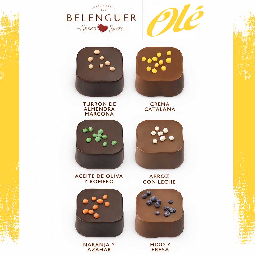 La Caja Amarilla Bombones Gourmet Belenguer – Sabores de España es una selección exquisita de 12 bombones artesanales, cada uno inspirado en la riqueza de la gastronomía española. Esta colección combina gianduja y praliné con ingredientes tradicionales de España, ofreciendo una experiencia de sabor única, innovadora y exclusiva.