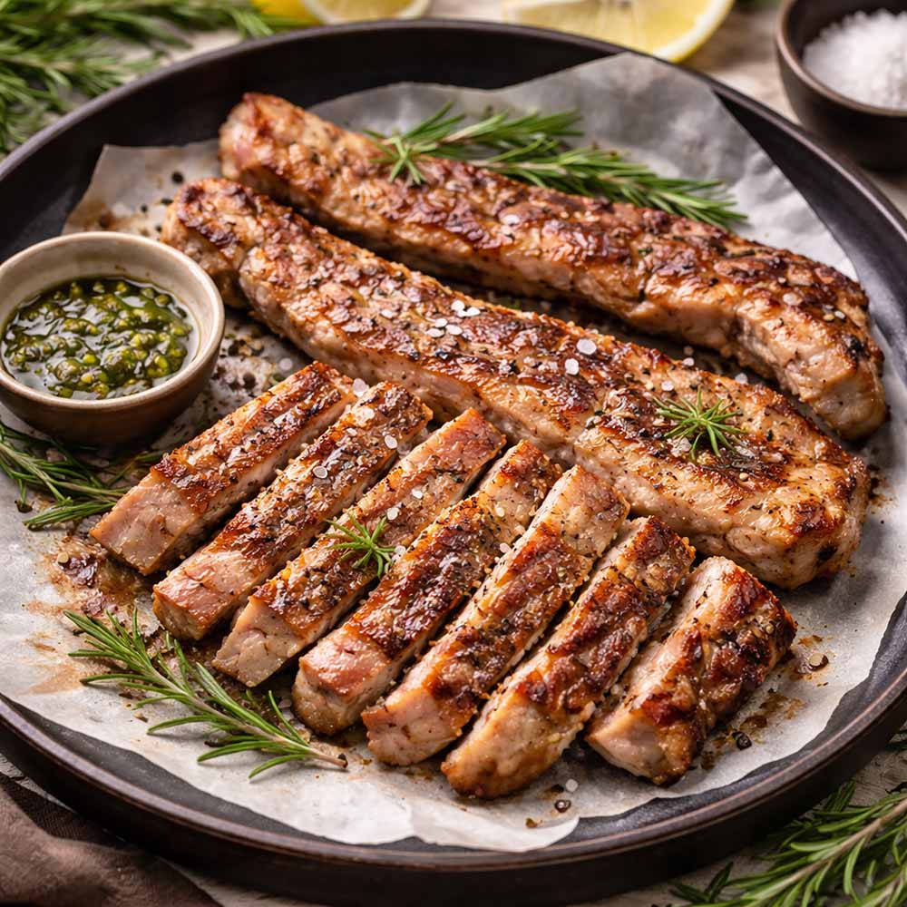 Procedente de cerdos criados en Extremadura, este corte destaca por su textura tierna y gran potencia de sabor, ideal para cocinar a la plancha o a la parrilla. Su rápida preparación permite disfrutar de una carne sabrosa, con exterior ligeramente crujiente y un interior jugoso.